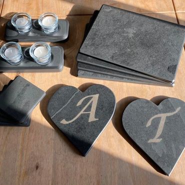 Slate is an elegant and practical material for everyday use. Bespoke slate coasters and placemats provide a sophisticated surface to protect your furniture while adding a sleek, contemporary touch to your dining experience. With customisable sizes, shapes, and designs, you can create coasters and placemats that reflect your personal style or brand, adding a natural yet refined element to your home.