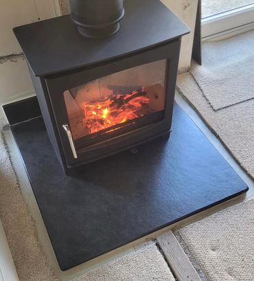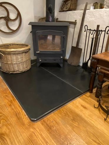 A JCBespokeSlate wood burner hearth combines beauty, functionality, and durability, offering an elegant foundation for your stove while protecting your floors from heat damage. The wide range of customizable shapes ensures that your hearth will perfectly suit your room’s design and the specific requirements of your wood burner. Let us help you create a stylish, practical solution that enhances your living space and adds warmth to your home for years to come.